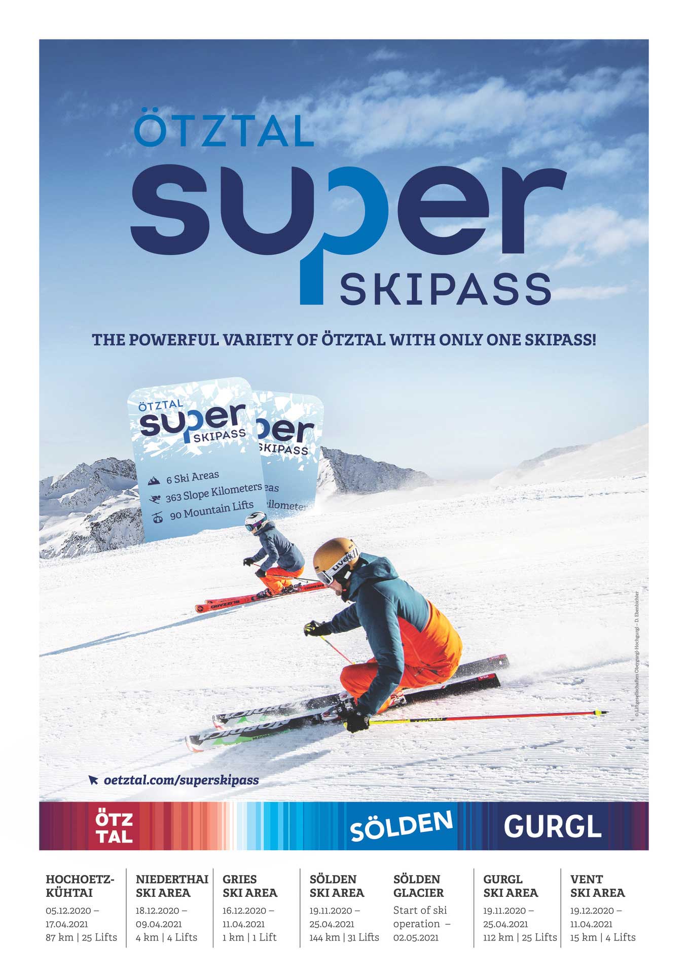 356 Pistenkilometer, 90 Liftanlagen und 6 Skigebiete – mit dem neuen Ötztal Superskipass heißt es freie Fahrt auf den gesamten Pisten im Tal. Mit dabei sind die bekannten Skidestinationen Sölden und Obergurgl-Hochgurgl sowie die familientauglichen Regionen in Hochoetz-Kühtai, Niederthai, Gries und Vent.
